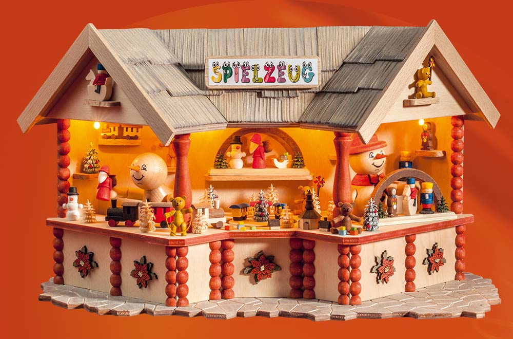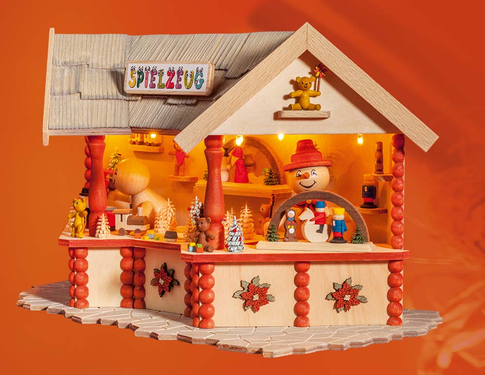 Spielzeughäusel, indirekt beleuchtet, Größe L/B/H ca. 18 cm/31 cm/ cm, Themenwelt 'Weihnachtsmarkt'