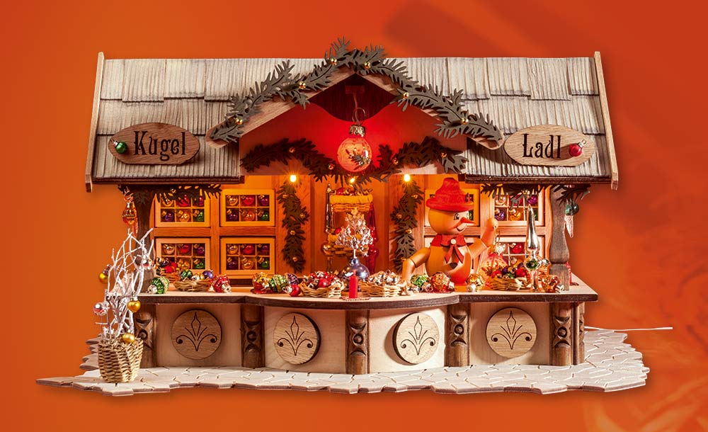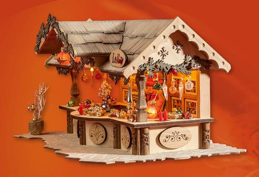 Glasschmuckhäusel, indirekt beleuchtet, Themenwelt 'Weihnachtsmarkt'