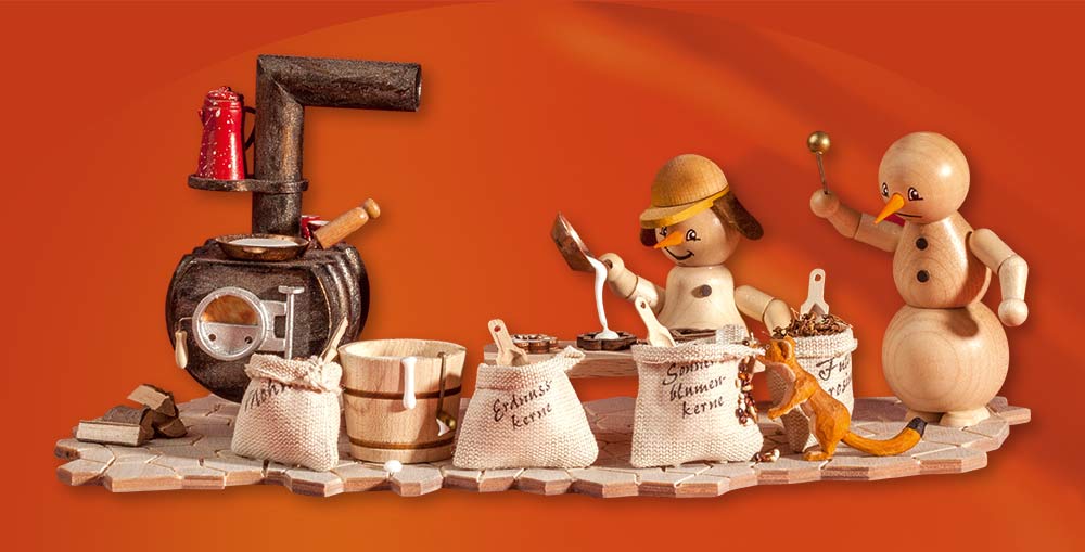 Unser Reporter Klaus Knolle war schon immer sehr neugierig und schaut daher beim Futterhäusel und dessen Schmelzofen vorbei. Hier beim Schmelzofen kann man zusehen wie die Futterringe gefertigt werden und welche Zutaten dafür benötigt werden. Schmelzofen, Größe L/B/H ca. , Themenwelt 'Weihnachtsmarkt'