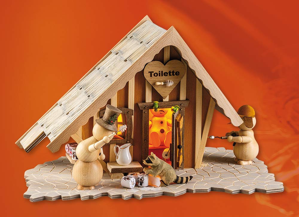 Eilmeldung! Wie unser fliegender Reporter Klaus Knolle berichtet, gab die Geschäftsführung des Weihnachtsmarktes am Schneekugelwald endlich die seit langem angekündigte Einweihung einer öffentlichen Toilette bekannt. In diesem Zusammenhang weist das zuständige Ordnungsamt darauf hin, dass ab sofort das Verrichten der Notdurft im nahe gelegenen Schneekugelwald mit einem Bußgeld von 3 Talern bestraft wird. Das Bildmaterial wurde von unserem Fotograf Rudi Rübe bereitgestellt. Toilettenhäusel, indirekt beleuchtet, Größe L/B/H ca. 21 cm/31 cm/18 cm, Themenwelt 'Weihnachtsmarkt'