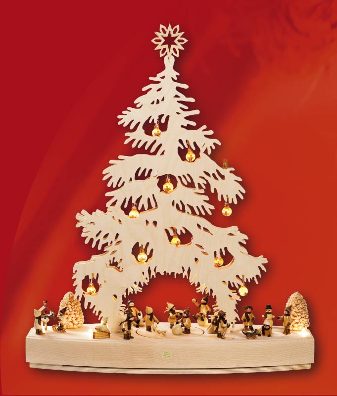 Doppelschwibbogen mit Original handgemalten und beleuchteten Thüringer Weihnachtskugeln, Drehbühne